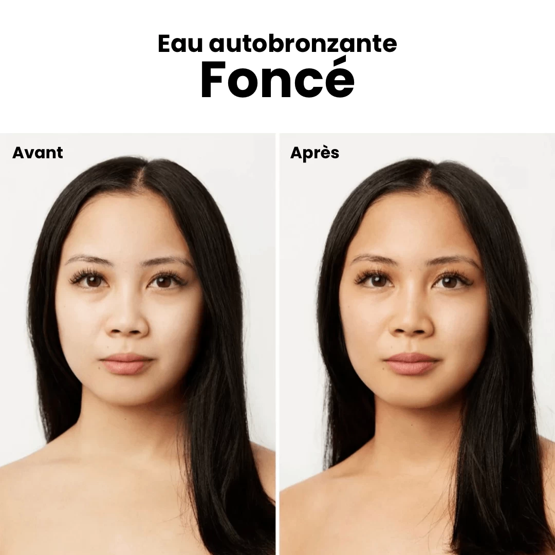 L’eau autobronzante pour le visage s’applique en quelques secondes seulement! Vaporiser la bruine rapidement sur le visage, le cou et le décolleté. L’effet bronzé apparaitra dans les 6 heures suivant l’application.