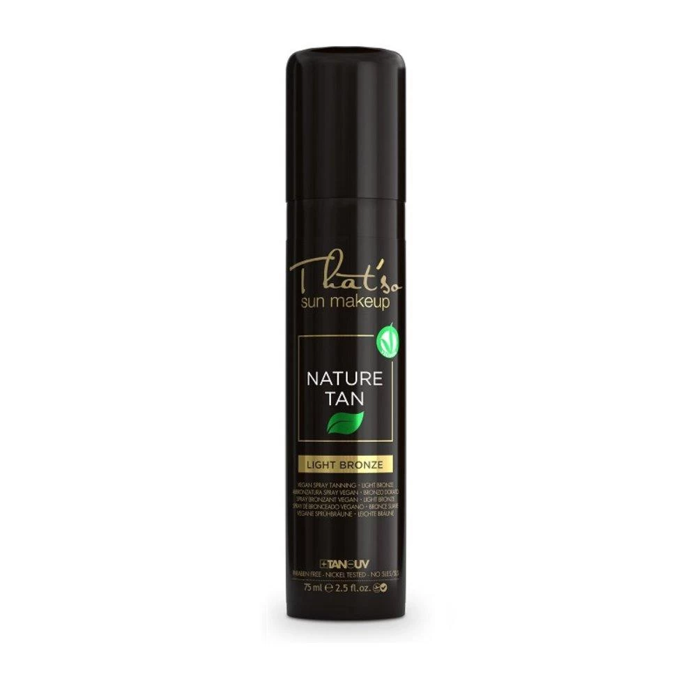 Nature Tan est le nouveau produit de la ligne That’so, respectueux de la nature et certifié VEGANOK, il procure un bronzage naturel instantané sur le visage et le corps, sans besoin de radiations solaires. Le but du bronzage instantané est atteint grâce à un bronzant cosmétique, un mélange de pigments colorés également utilisé pour les aliments et sans danger pour la peau humaine. La texture du produit est légère et douce et bien absorbée par la peau qui obtient une coloration lumineuse naturelle et uniforme. La coloration s’intensifie en quelques heures après l’application.