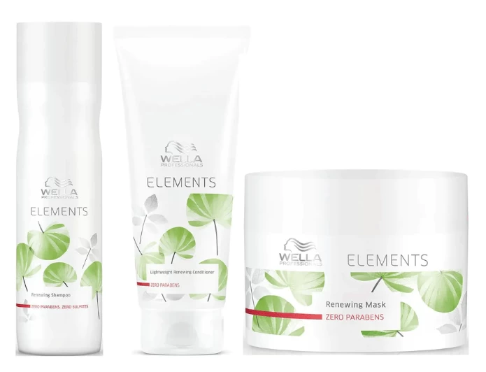 Offrez à vos cheveux le Wella Elements Trio Bundle, un kit de trois pièces combinant un shampooing, un après-shampooing et un masque capillaire, pour des cheveux nourris et régénérés.